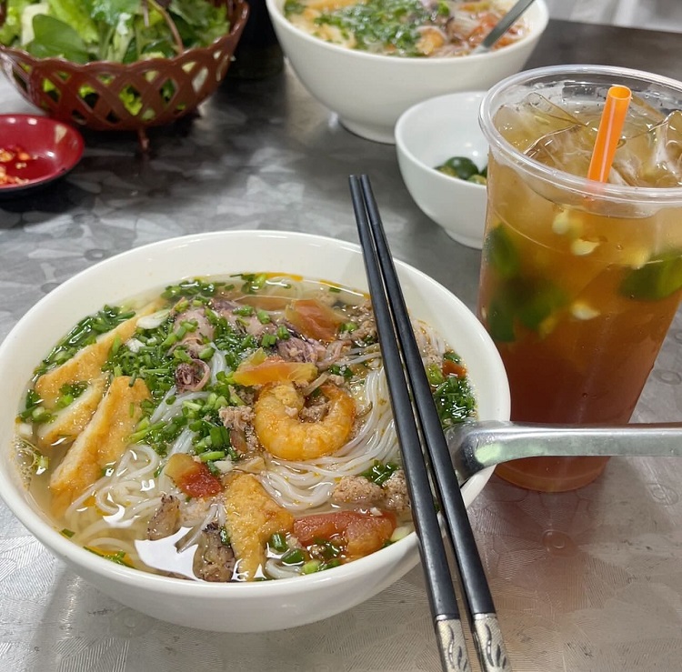 Quán Quân Nhài: Nổi tiếng với bún hải sản nước dùng thanh, sạch sẽ. Giá mềm (25k - 50k). Nên đi trước 8h sáng để còn đủ món. (9/10)