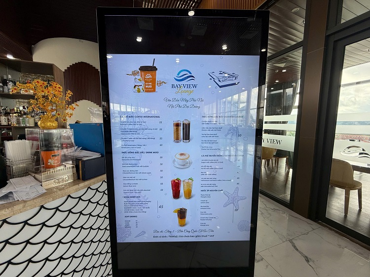 Bên trong sảnh nhà ga: Có các quầy cafe, quán ăn nhanh phục vụ đồ ăn sáng (bún, phở), bánh mì và các loại nước giải khát. Không gian sạch sẽ, có máy lạnh và chỗ ngồi thoải mái.