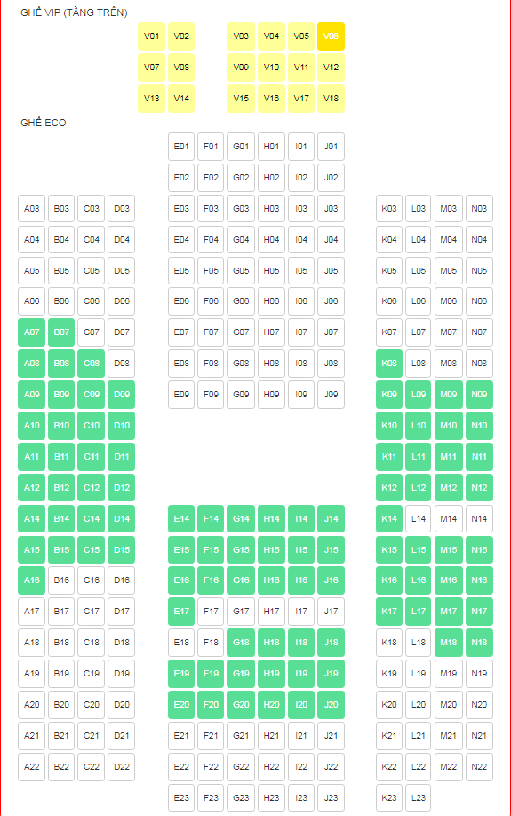 - Ghế VIP: 18 ghế (Nằm ở khoang riêng biệt, ghế bọc da cao cấp, có khả năng ngả lưng sâu và trang bị màn hình giải trí riêng).